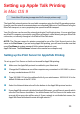 Setting up Apple Talk Printing in Mac OS 9 Note: Mac OS printing is supported for Postscript printers only! The AppleTalk network protocol is used with computers using the MacOS operating system. It can be used for network communications over standard Ethernet or Fast Ethernet using the EtherTalk transport, or over a proprietary low-speed LocalTalk transport. Your Print Server can be used for network printing to PostScript printers.