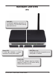 Hardware Overview LEDs LAN LED A solid light indicates connection on the LAN port. This LED blinks during data transmission. Power LED A solid light indicates a proper connection to the power supply. USB LEDs (1-4) A solid light indicates connectivity to an USB printer or scanner. WLAN LED A solid light indicates that the wireless segment is ready. This LED blinks during wireless data transmission.