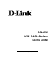 DSL-210 USB ADSL Modem User’s Guide About This User’s Guide This user’s guide provides instructions on how to install the DSL-210 USB ADSL Modem and use it to connect a computer and connect to the Internet. If you are using a computer with a functioning USB port, you can use the Quick Installation Guide to quickly establish your ADSL connection and access the Internet. ADSL services are provided by, and sold by a variety of businesses.