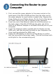 Configuring the Router via the D-Link Click’n Connect Utility The Click’n Connect utility will guide you through the installation process stepby-step. Follow the on-screen instructions, then proceed to the next step. Step 2 – Connect the Device to your Computer Follow the on-screen instructions, then Click Next to continue Connect the Ethernet cable from the computer to one of the LAN ports (numbered 1 to 4) on the DSL-2740.
