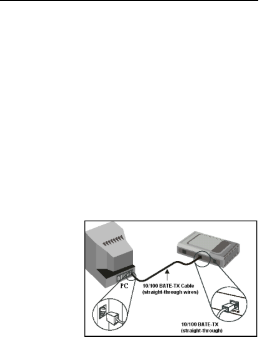 The Router may be connected to any 10/100BASE-TX Ethernet LAN. Any connection to an Ethernet concentrating device