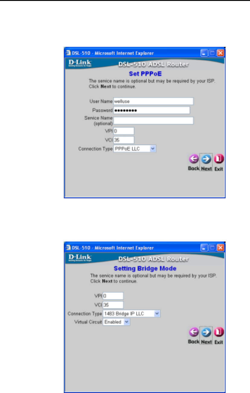 If your selected PPPoE/PPPoA, you will see the following page. Enter in the Use Name, Password, VPI, VCI and