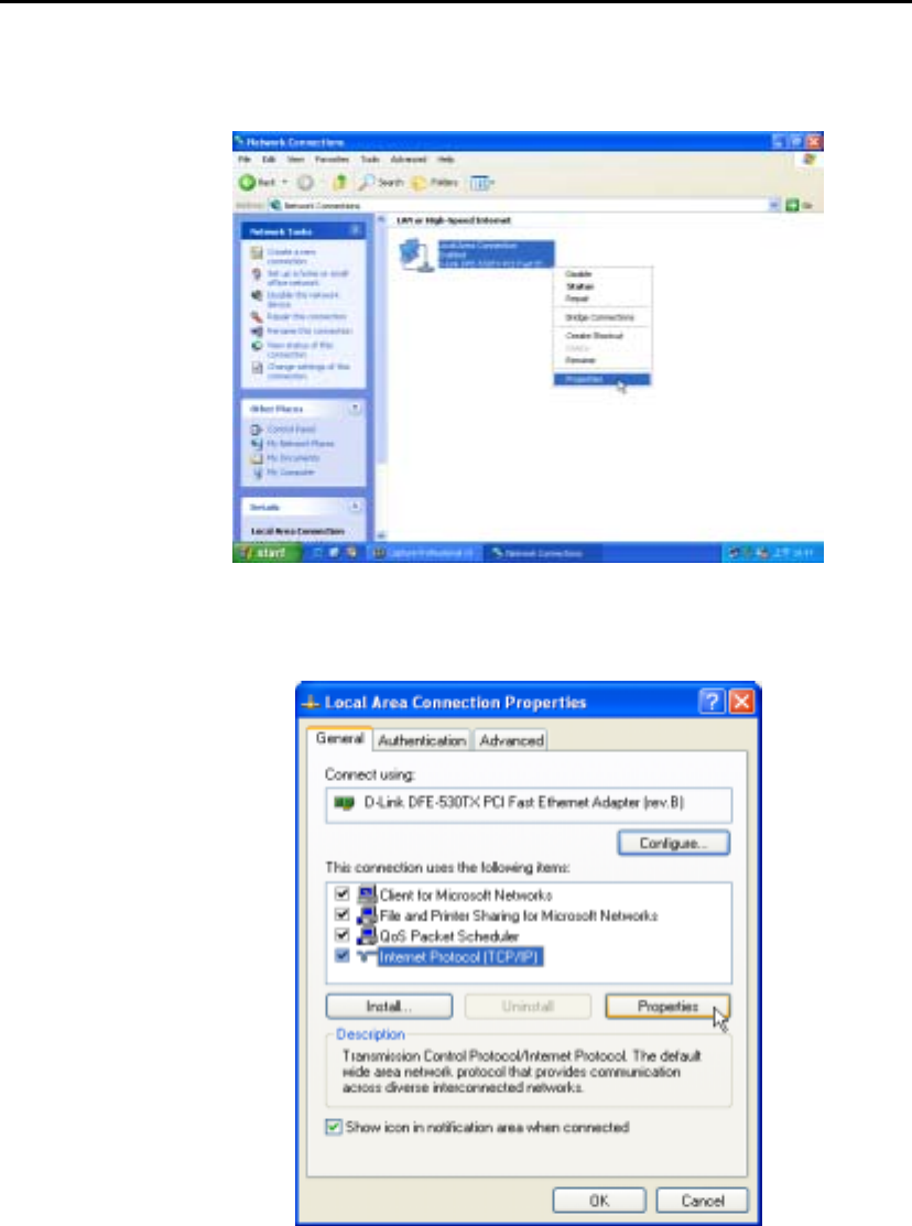 4. In the General tab of the Local Area Connection Properties menu. Highlight Internet Protocol (TCP/IP) under “This