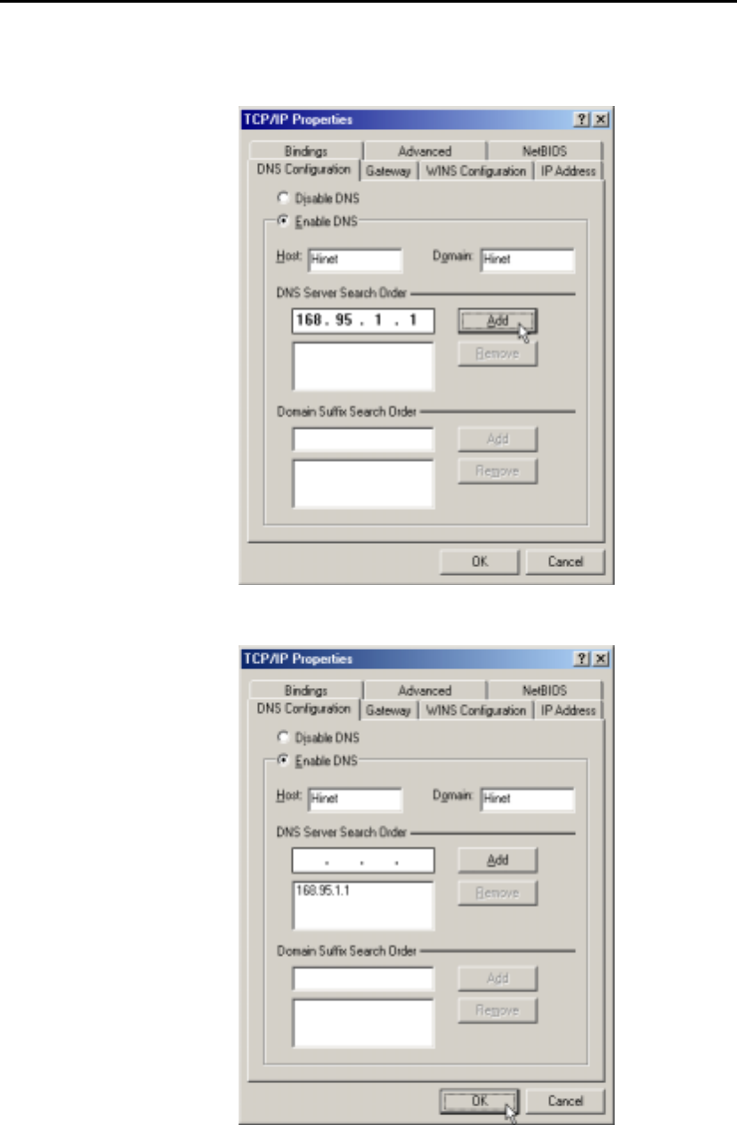 9. Enter the DNS settings in the DNS Server Order field and click Add. If you have more than one DNS IP address,
