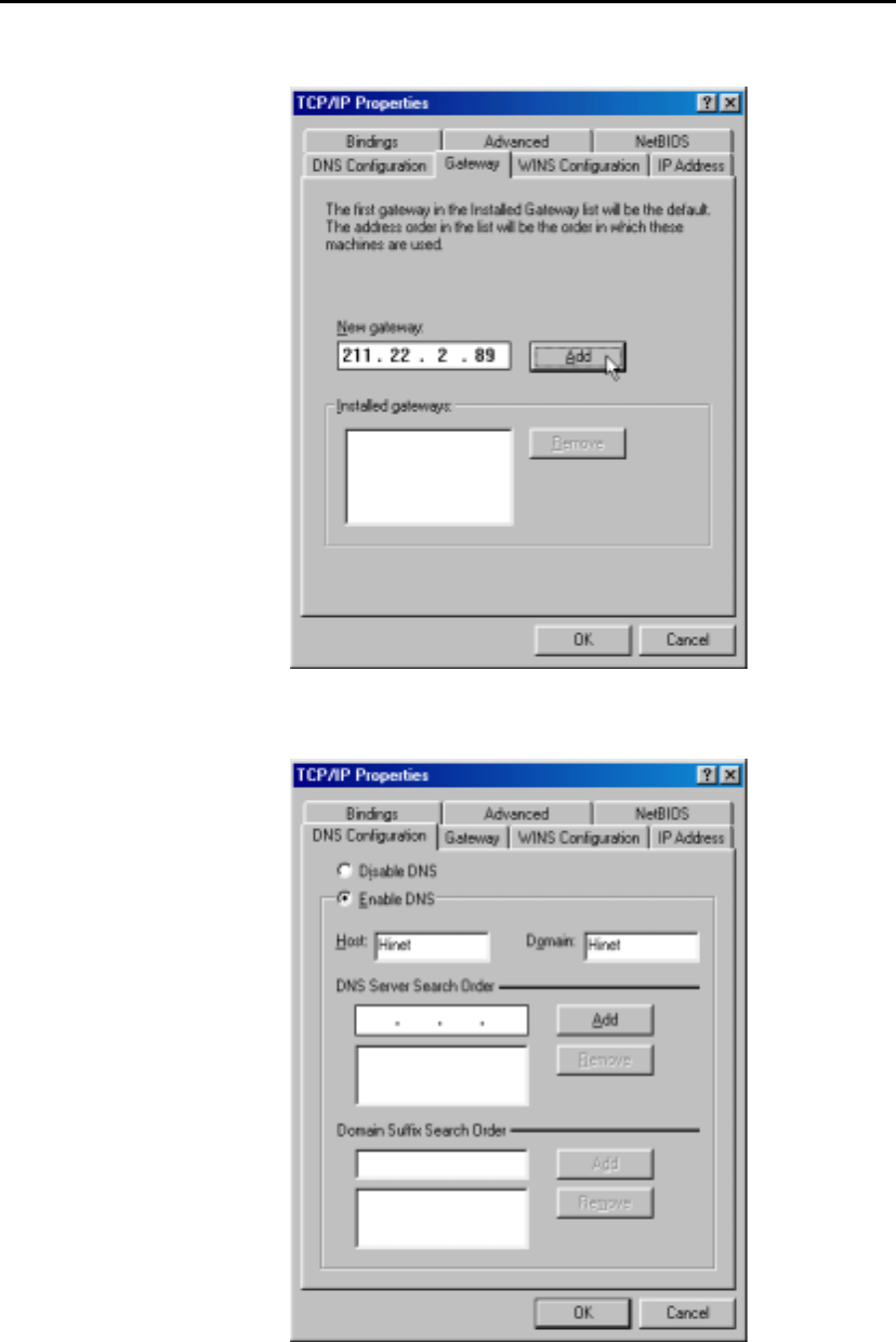 5. Select Gateway tab and enter the IP settings in the New gateway field. Click Add.