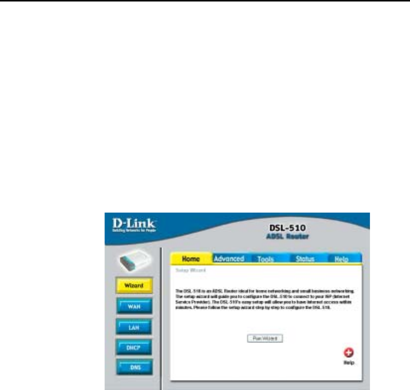 Wizard is a utility used to quickly configure the DSL-510. It will guide you through for quick and basic steps to help you