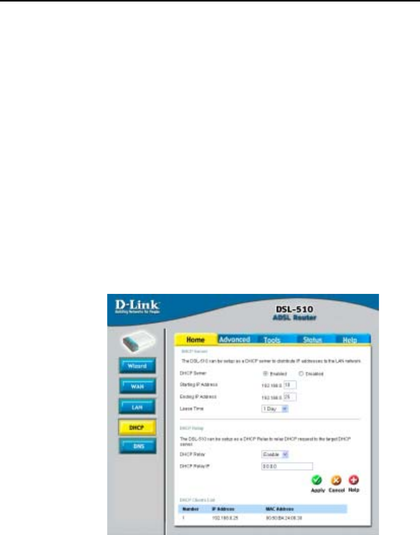 DHCP stands for Dynamic Host Control Protocol. The DSL-510 has a built-in DHCP server. The DHCP Server will