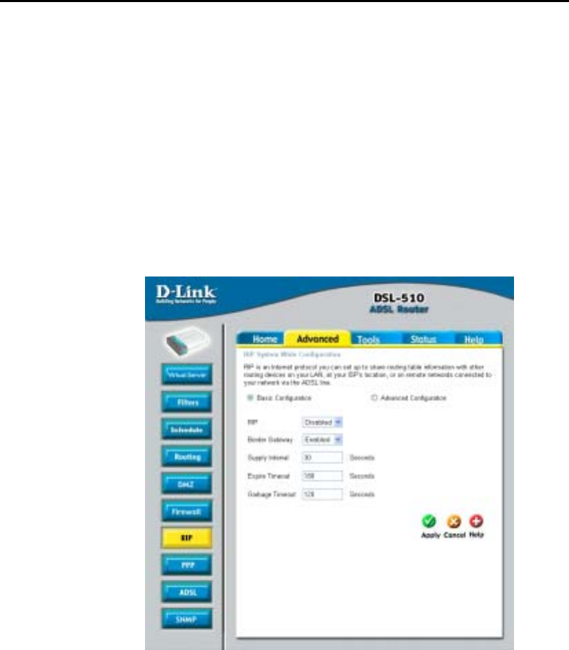 The RIP Configuration page allows the user to set the configuration for the system wide configuration of RIP. The actual