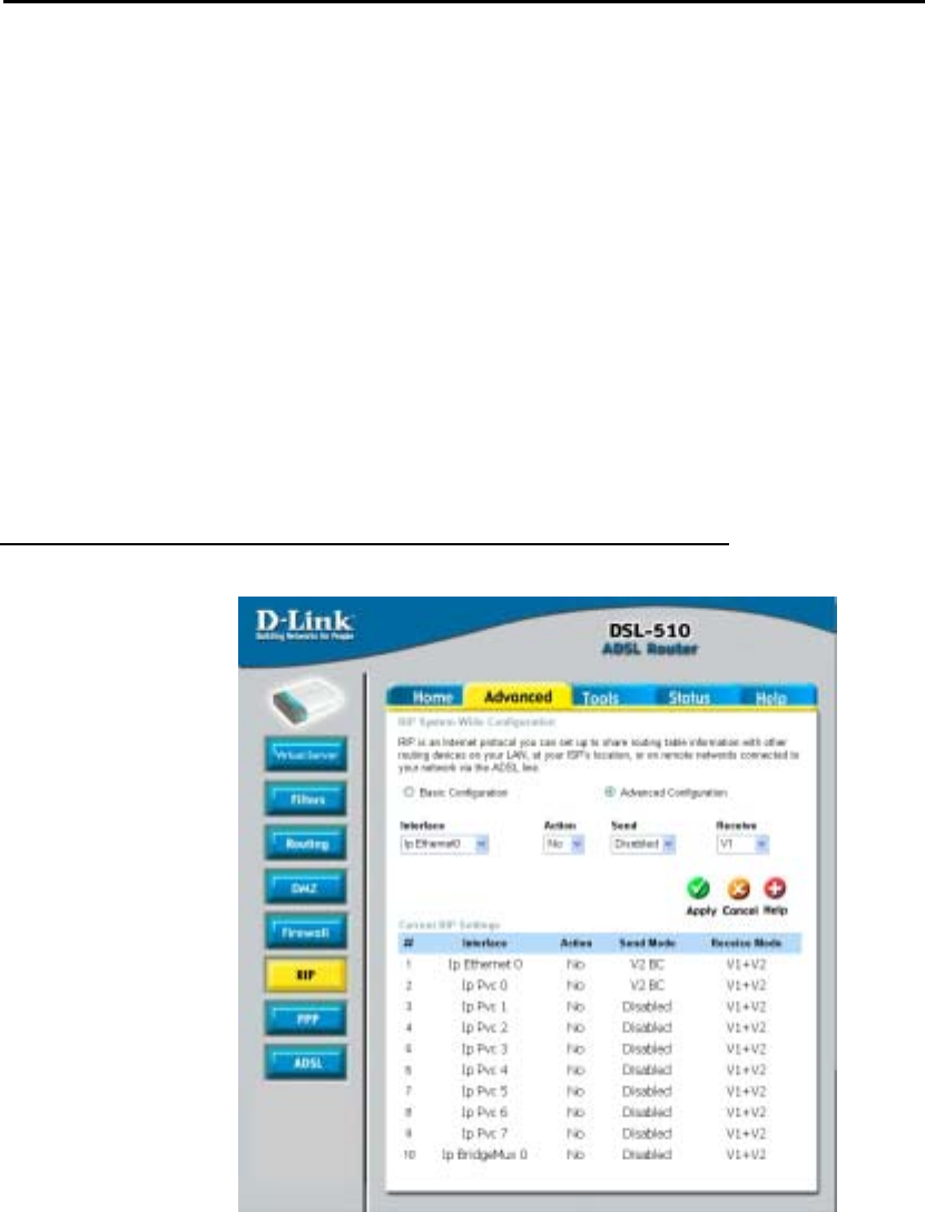 Action: This field allows the user to Enable (Yes) or Disable (No) the specified interface for RIP.