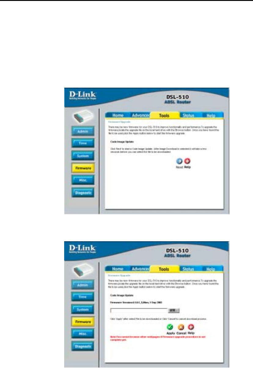 download the new firmware. You can then use the DSL-510 Firmware Upgrade Utility included with the Router to transfer