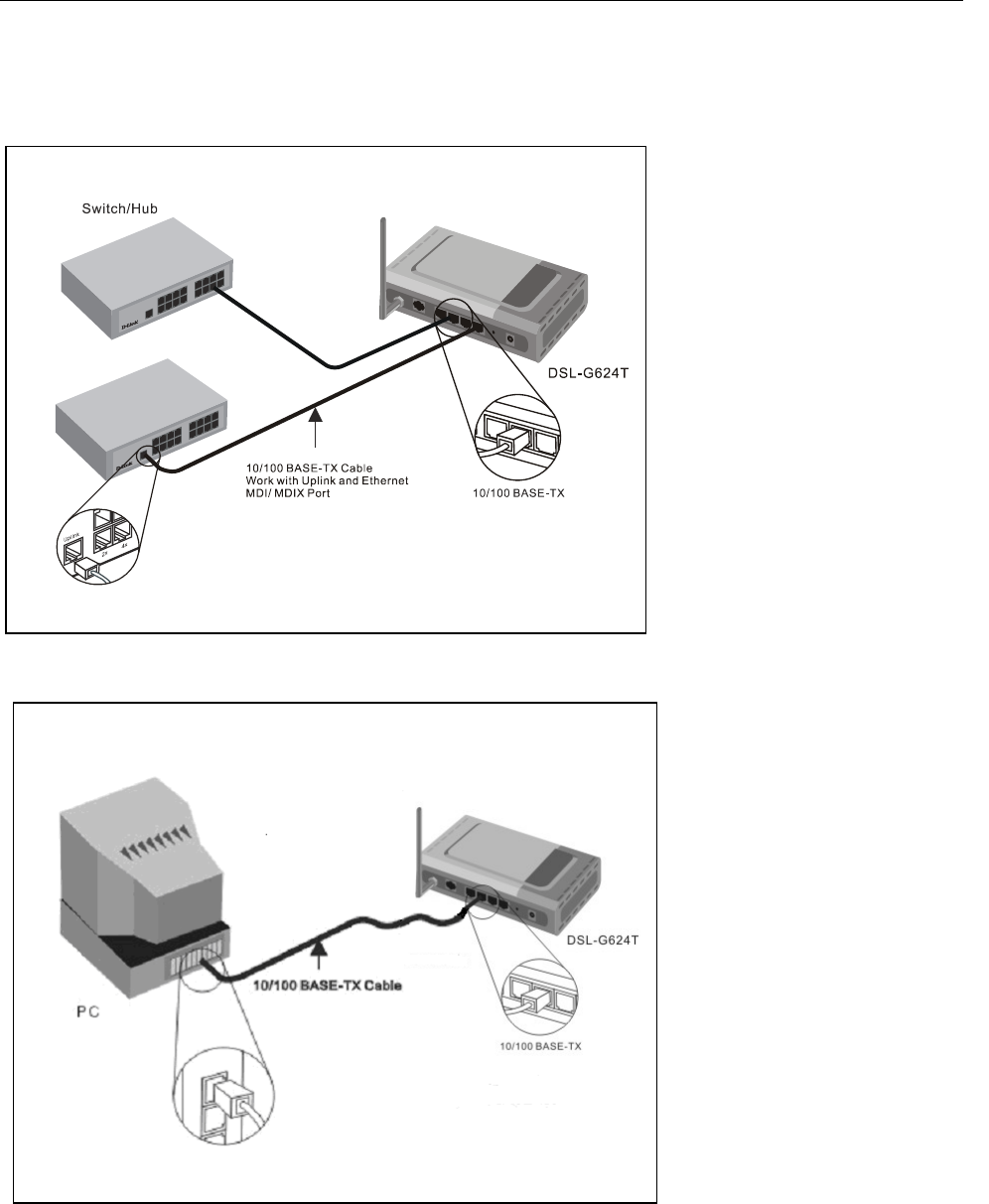 Connect the Router to an uplink port (MDI-II) on an Ethernet hub or switch with a straight-through cable as shown in