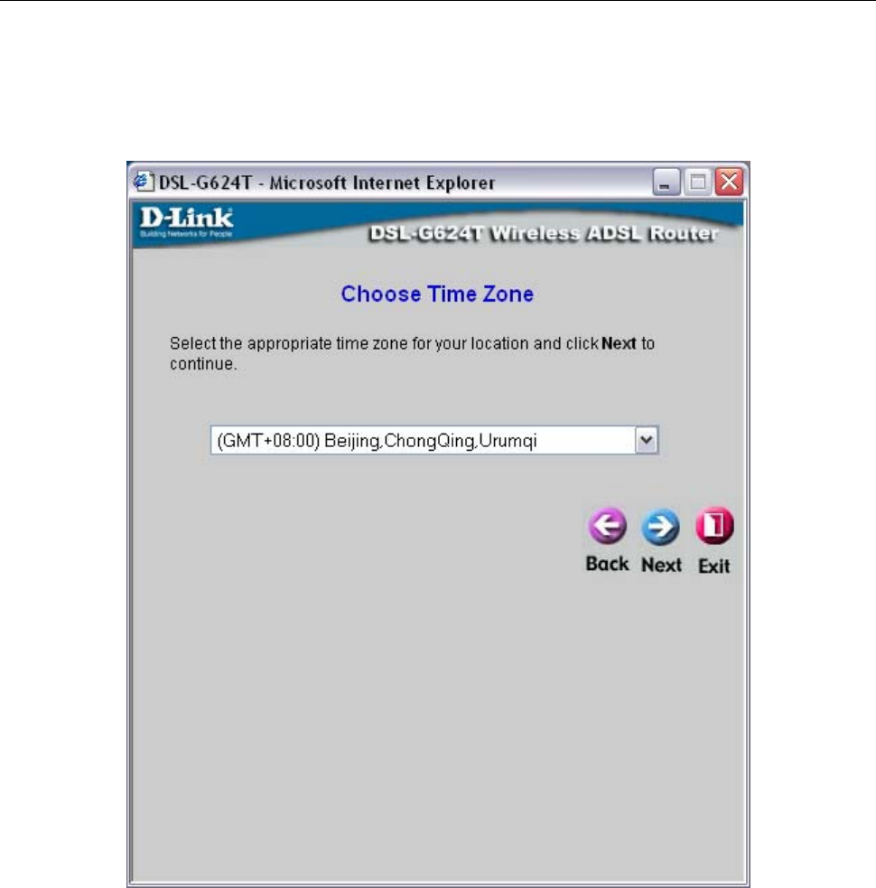 Choose the time zone you are in from the pull-down menu and click Next. This sets the system time used for the