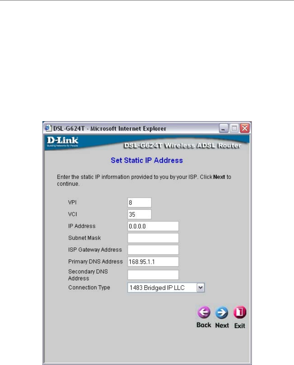 Using the Setup Wizard - For Static IP Address connections: