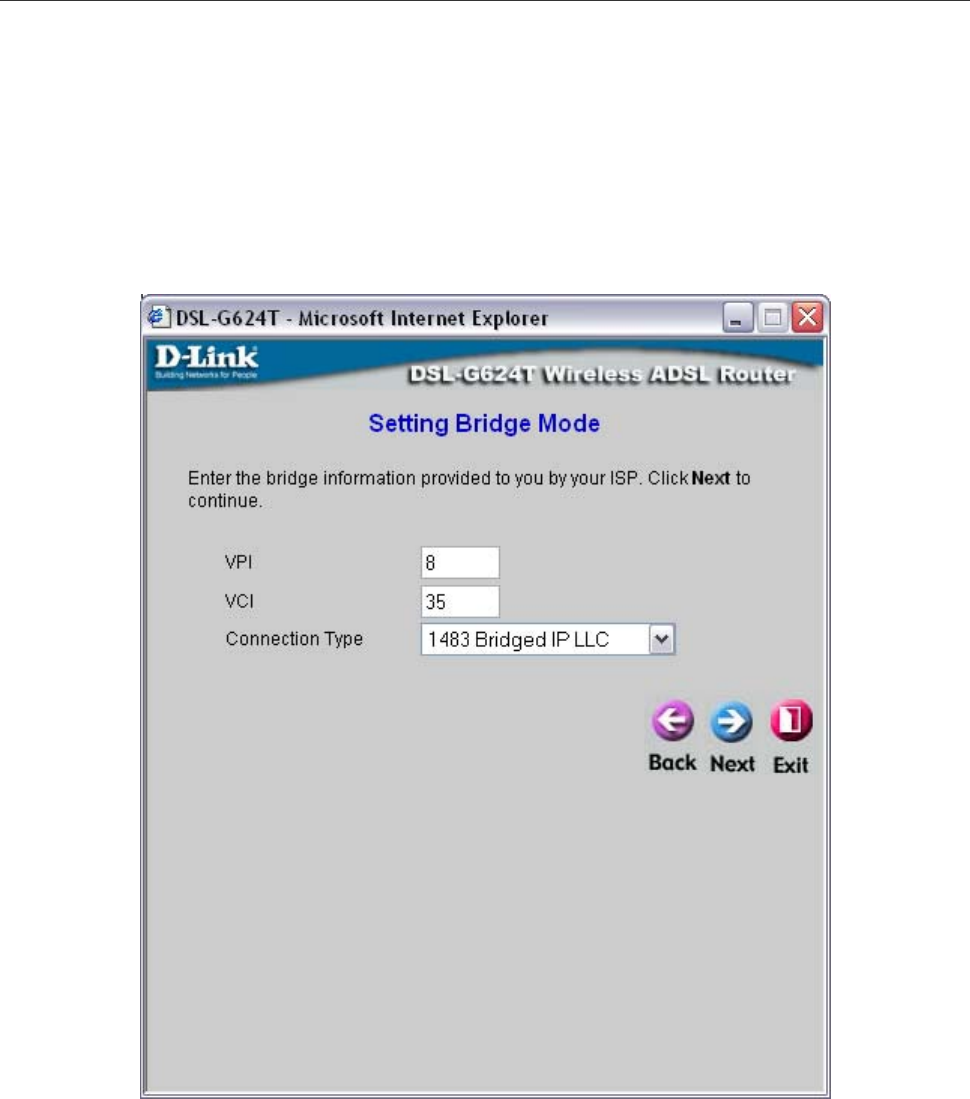 2. If you are instructed to change the VPI or VCI number, type in the correct setting in the available entry fields.