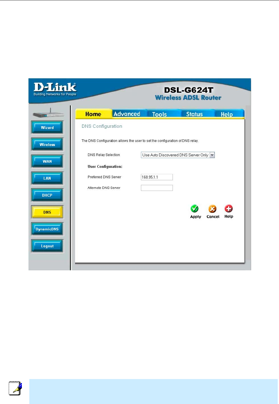 the user. Alternatively, you may also disable the DNS relay and configure hosts on your LAN to use DNS servers