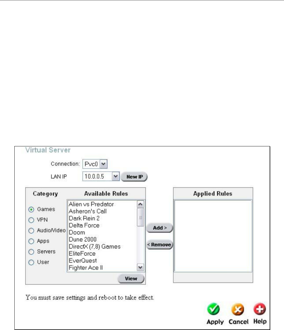 you want to configure. There are six categories, which maybe configured for each PVC. Five categaries, Games, VPN,