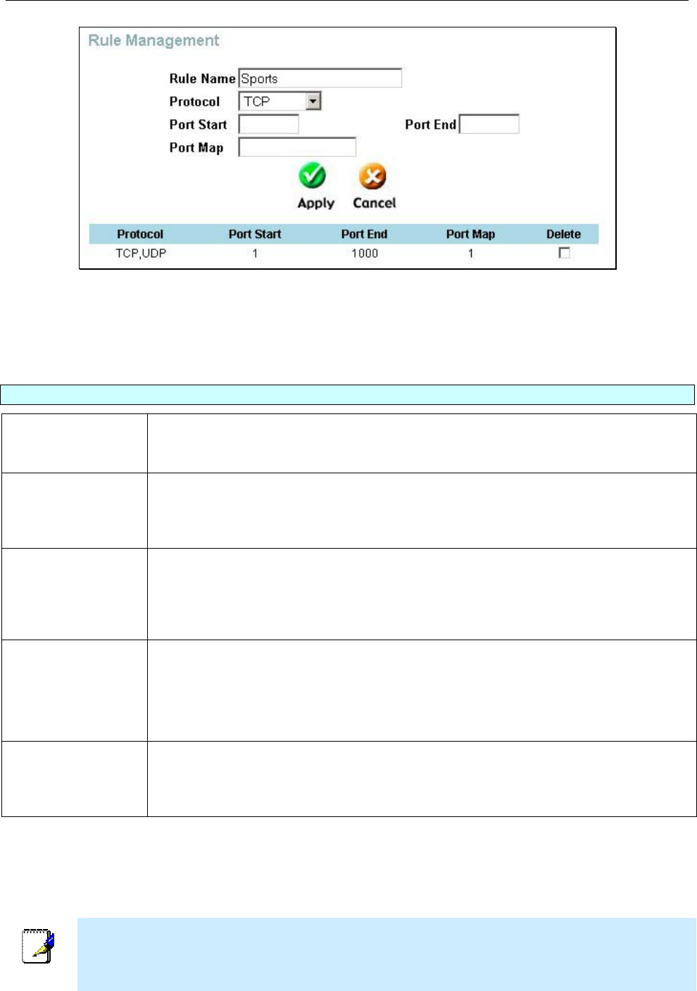 the Port Start and Port End fields and the Port for which this rule is to be applied. Click Apply to set the new rule.