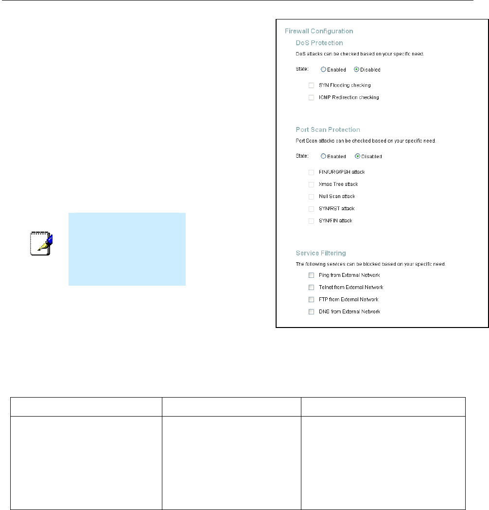 When DoS, Port Scan, or Service Filtering Protection is enabled, it will create a firewall policy to protect your network