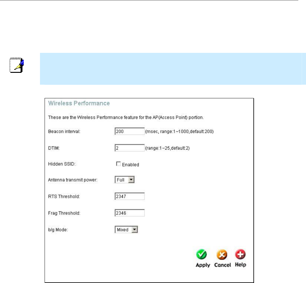 If you want to tweek wireless settings, click the Wireless Performance menu button in the Advanced directory