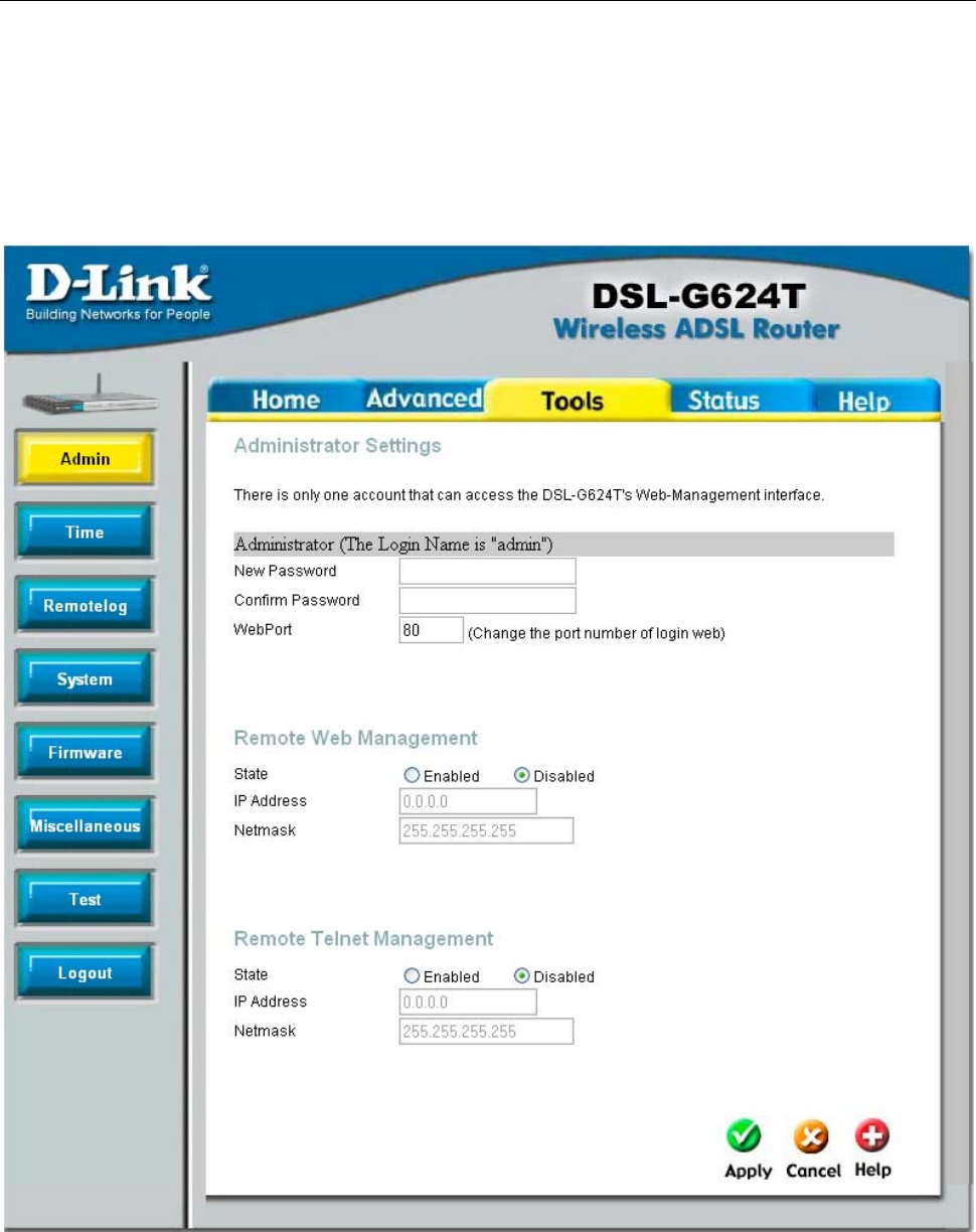 access the web manager, to save or load Router configuration settings and to restore default settings. The functions in