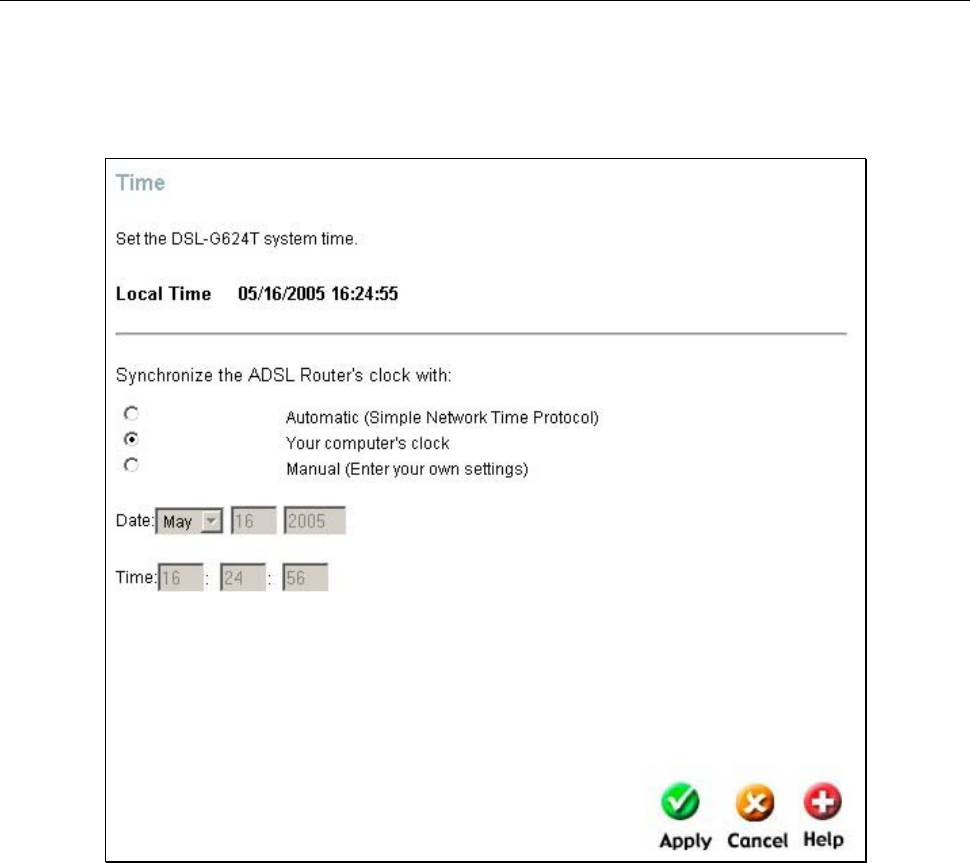 using your computer’s system clock (default) or set the time and date manually. If you opt to use SNTP, you must enter