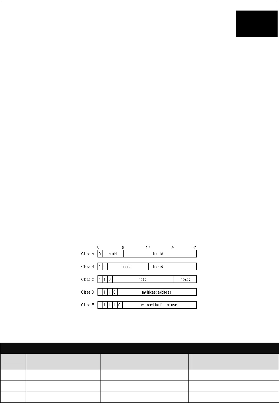 network. The previous figure illustrates how the net and host portions of the IP address differ among the three classes.