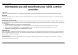 Section 2 – Installation Information you will need from your ADSL service provider Username This is the Username used to log on to your ADSL service provider’s network. Your ADSL service provider uses this to identify your account. Password This is the Password used, in conjunction with the Username above, to log on to your ADSL service provider’s network. This is used to verify the identity of your account.