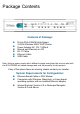 Package Contents Contents of Package: D-Link DVA-G3340S High-Speed 2.4GHz Wireless ADSL VOIP Router Power Adapter-AC 12V, 1200mA Manual and Warranty on CD RJ-11 Cable Ethernet Cable USB Cable Note: Using a power supply with a different voltage rating than the one included with the DVA-G3340S will cause damage and void the warranty for this product. If any of the above items are missing, please contact your reseller.
