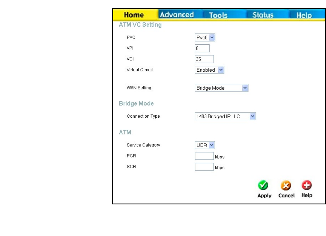 circuits for your ADSL service. For more information on ATM VC Settings, see