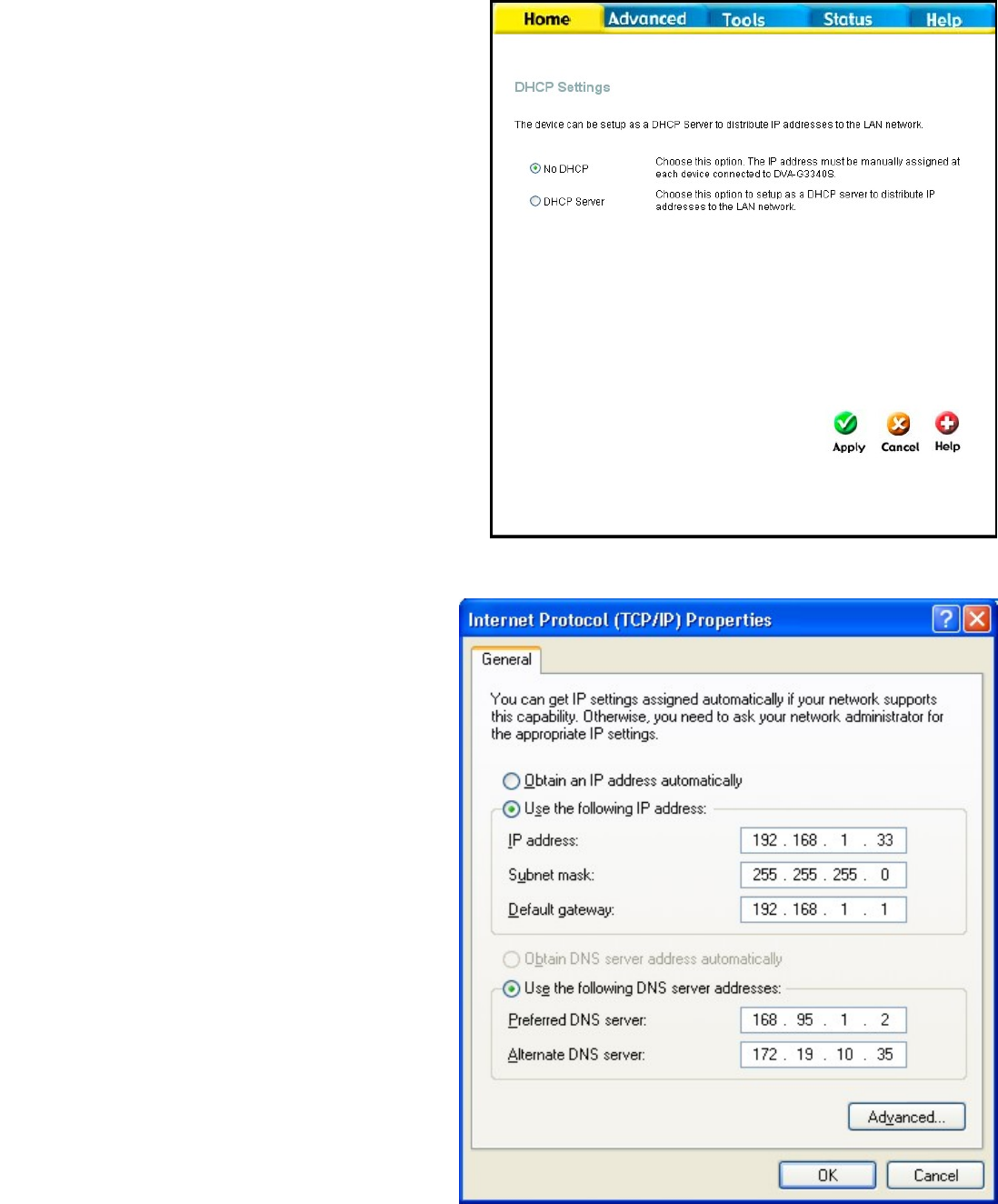 the TCP/IP Properties menu and