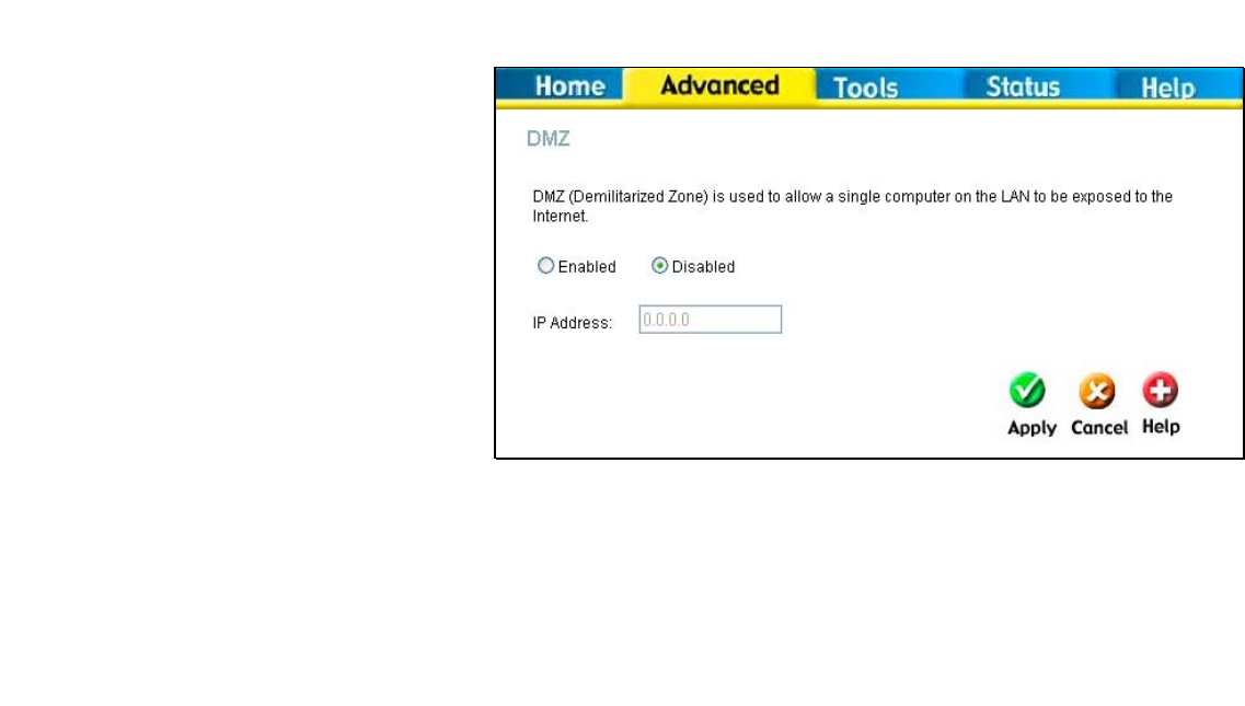 Apply. It will be necessary to save the settings and reboot the Router before the DMZ is