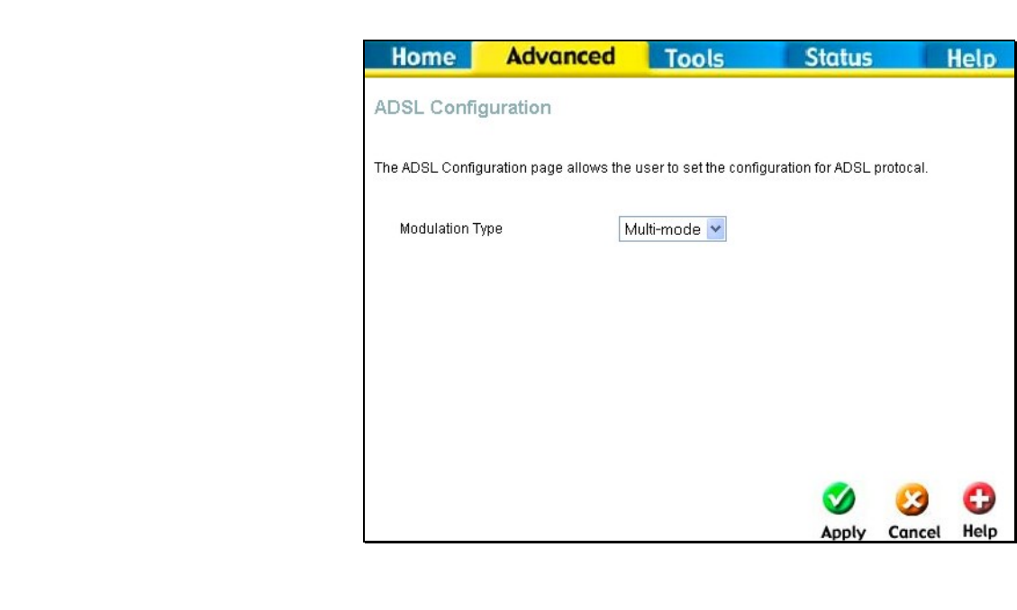 Advanced > ADSL
