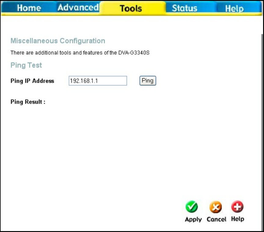 The Ping test functions on the WAN and LAN interfaces. Type the IP address you want