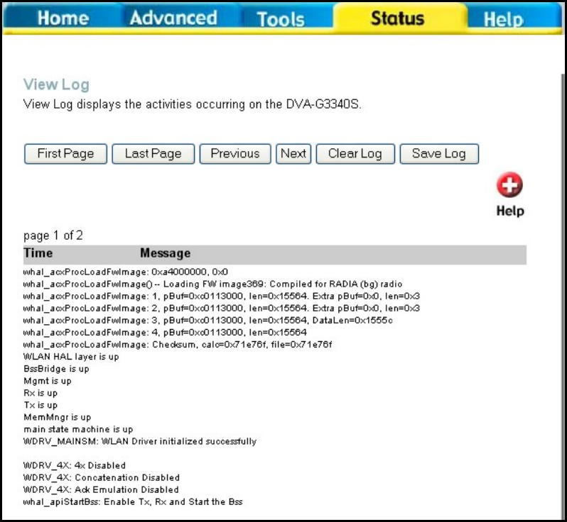 view or scroll log pages. You may also save a simple text file containing the log to your