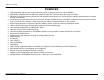 Chapter 1 Overview Package Contents • • • • • D-Link DVA-G3672B High-Speed 2.4GHz Wireless ADSL VOIP Router Power Adapter-DC 12V, 1200 mA Manual and Warranty on CD Quick Installation Guide Ethernet Cable (All the DVA-G3672B’s Ethernet ports are Auto-MDIX) If any of the above items are missing, please contact your reseller. Note: Using a power supply with a different voltage rating than the one included with the DVA-G3672B will cause damage and void the warranty for this product.