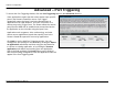 Chapter 2 Configuration Advanced – Port Triggering To access the Port Triggering window, click the Port Triggering button in the Advanced directory. Some applications require that the remote parties open specific ports in the Router’s firewall for access. Port Trigger dynamically opens the Open Ports in the firewall when an application on the LAN initiates a TCP/UDP connection to a remote party using Trigger Ports.