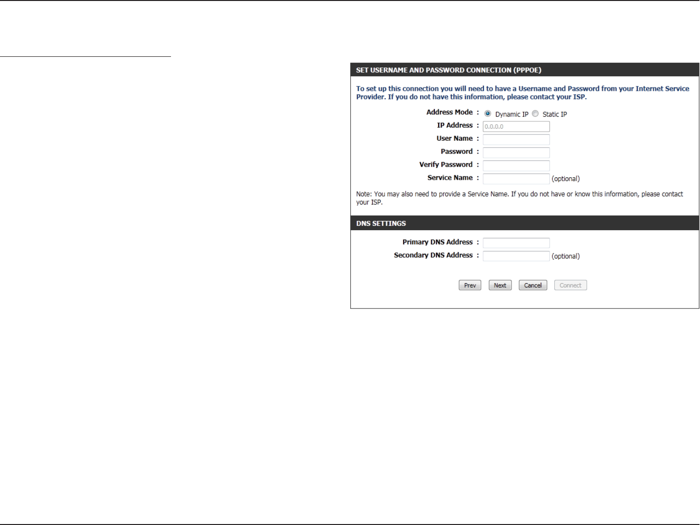 Enter the Secondary DNS IP address used here. This field is normally optional. Only one DNS address is required for a functional Internet connection,