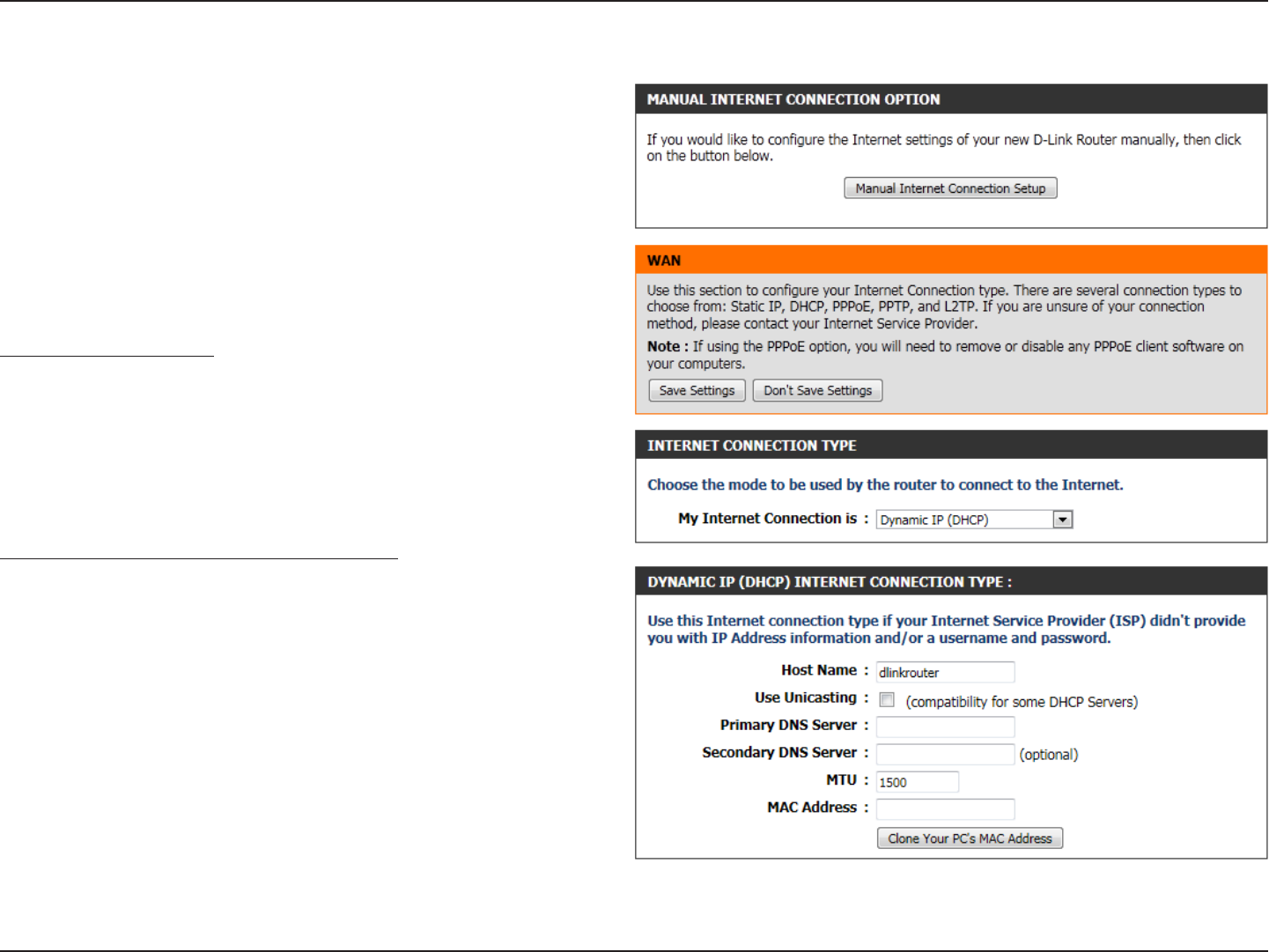 After selecting a specific Internet Connection type, this page will automatically refresh