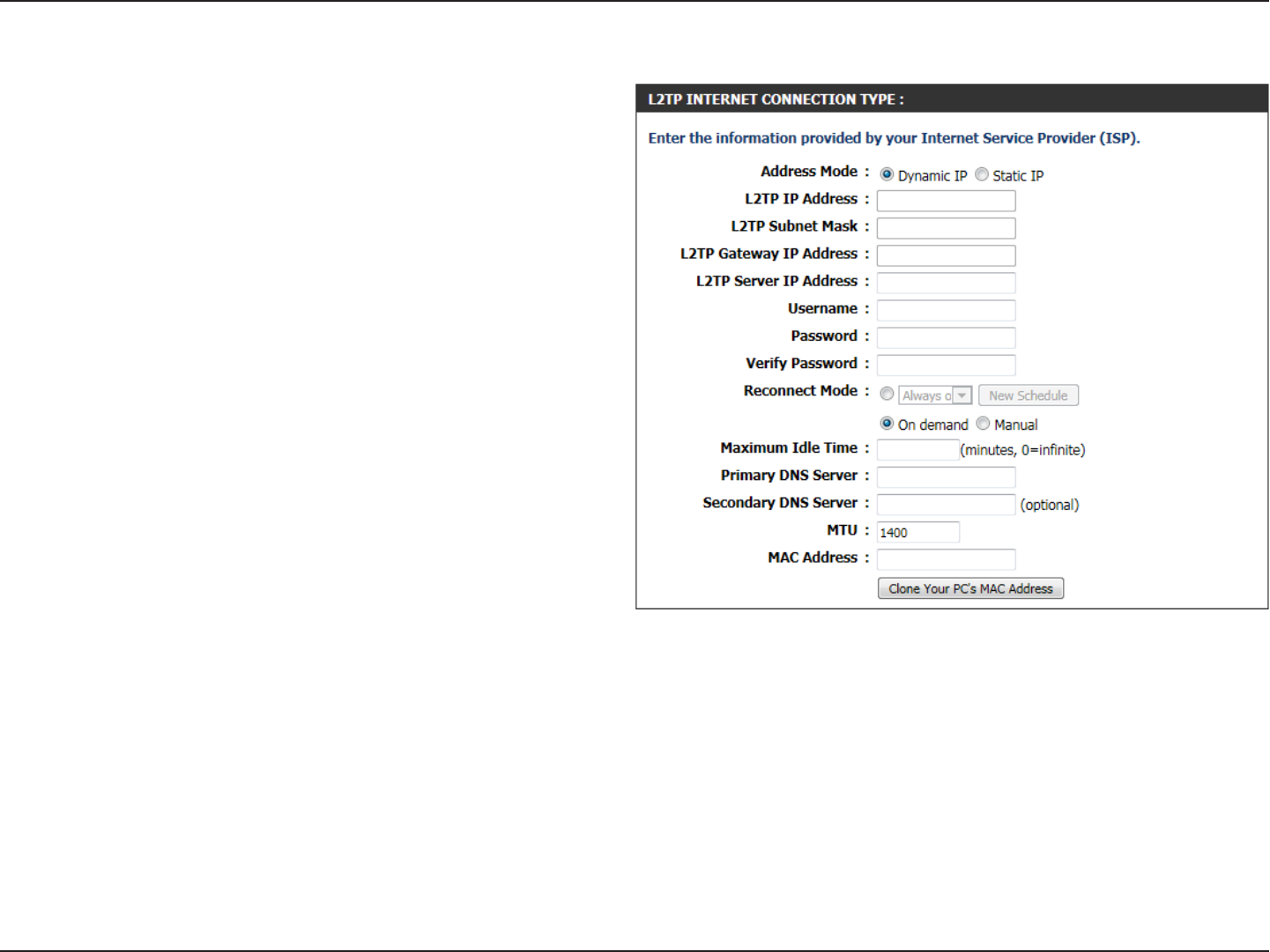 the default MAC address unless required by your ISP. You can use the Clone Your PC’s MAC Address button to replace the Internet port’s MAC