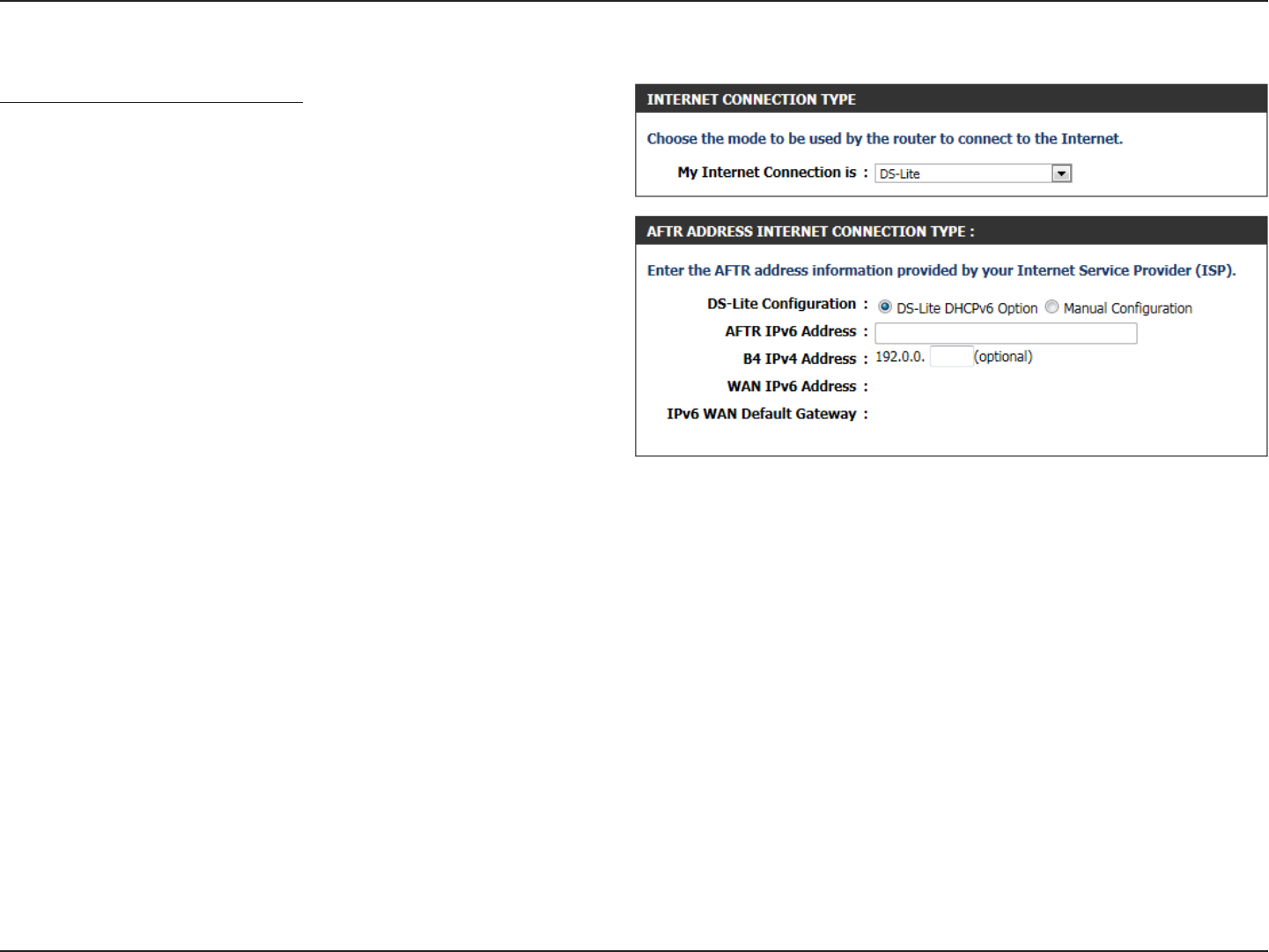 After selecting DS-Lite, the following parameters will be available for configuration: