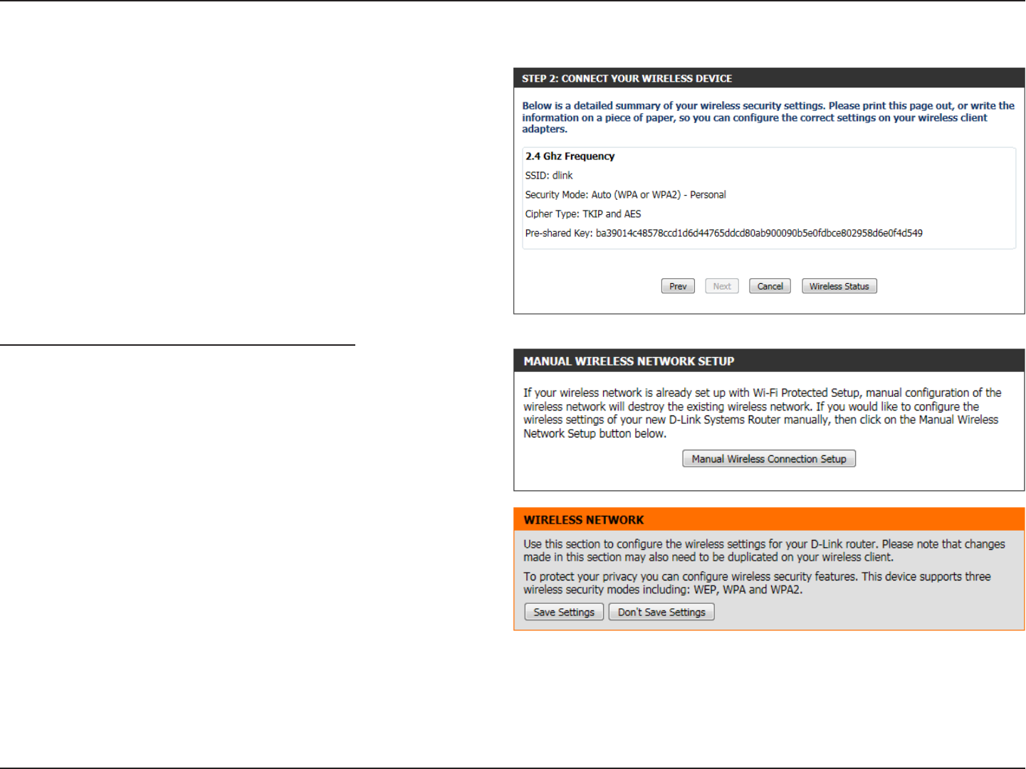 Wireless Settings: Manual Wireless Network Setup