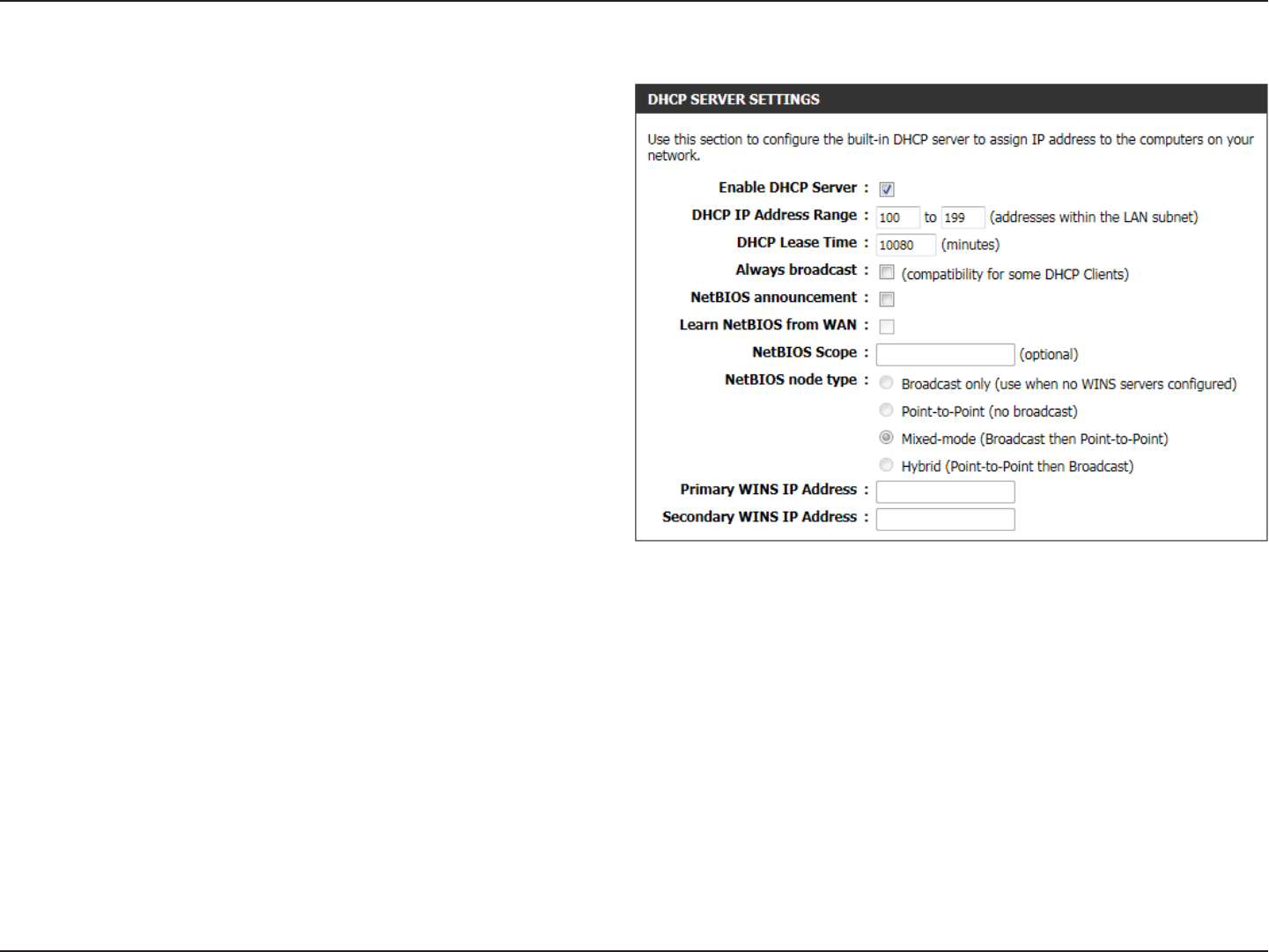 WINS server IP to point to a working WINS server. B-Node, this indicates to use local network broadcast ONLY. This setting is useful where there are