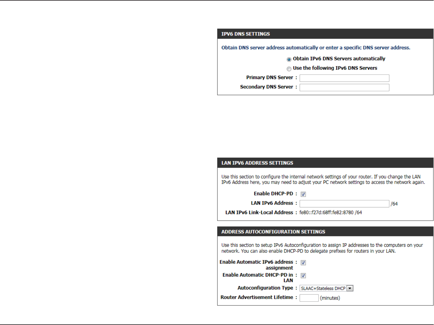 management interface. If you change the LAN IPv6 Address here, you may need to adjust your PC’s network settings to access the network again. DHCP-PD can be used to