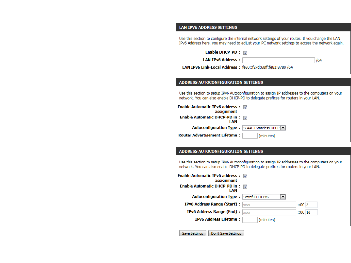 type is set to Stateful. Enter the IPv6 Address Lifetime (in