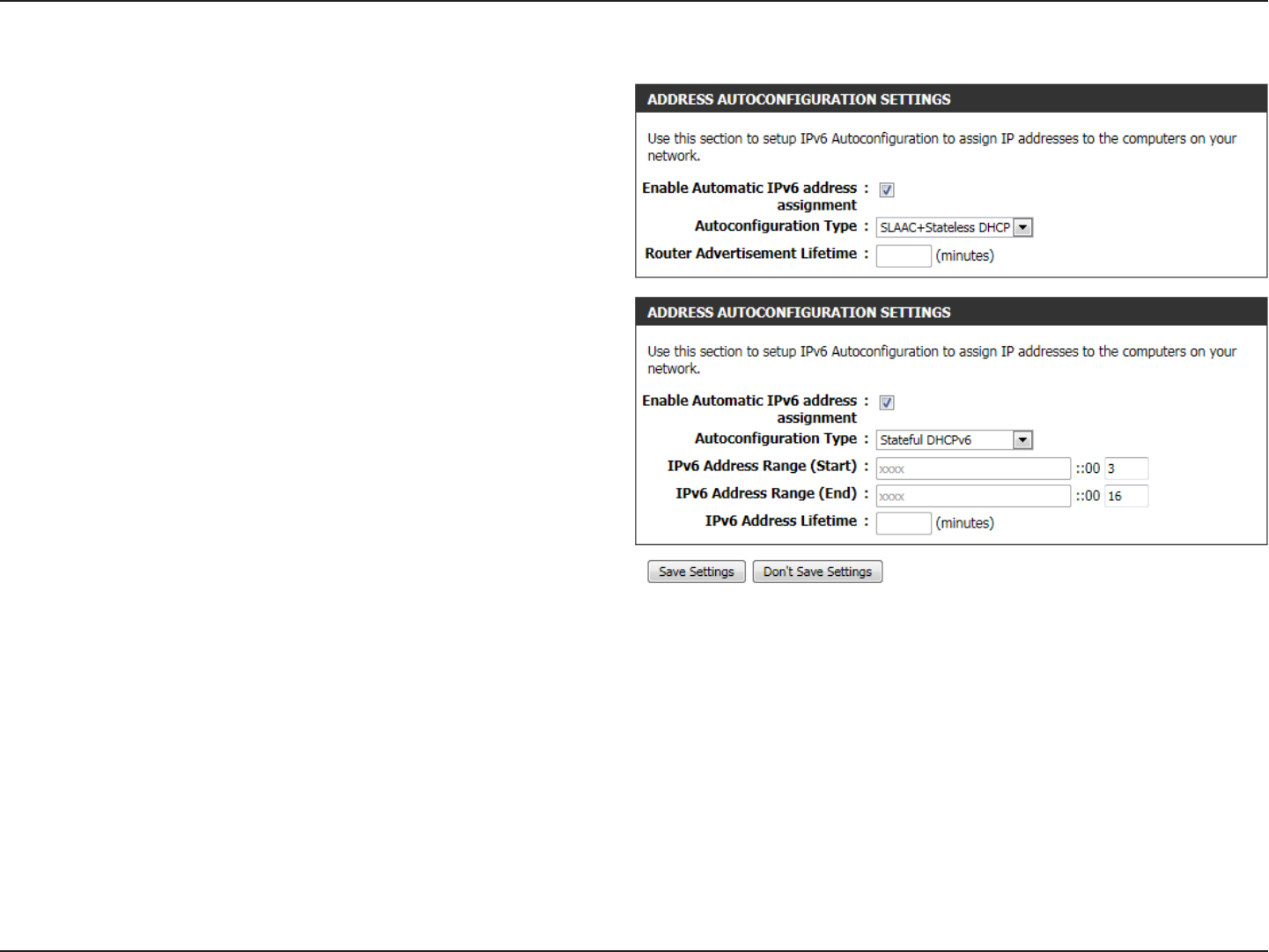 type is set to Stateful. Enter the IPv6 Address Lifetime (in