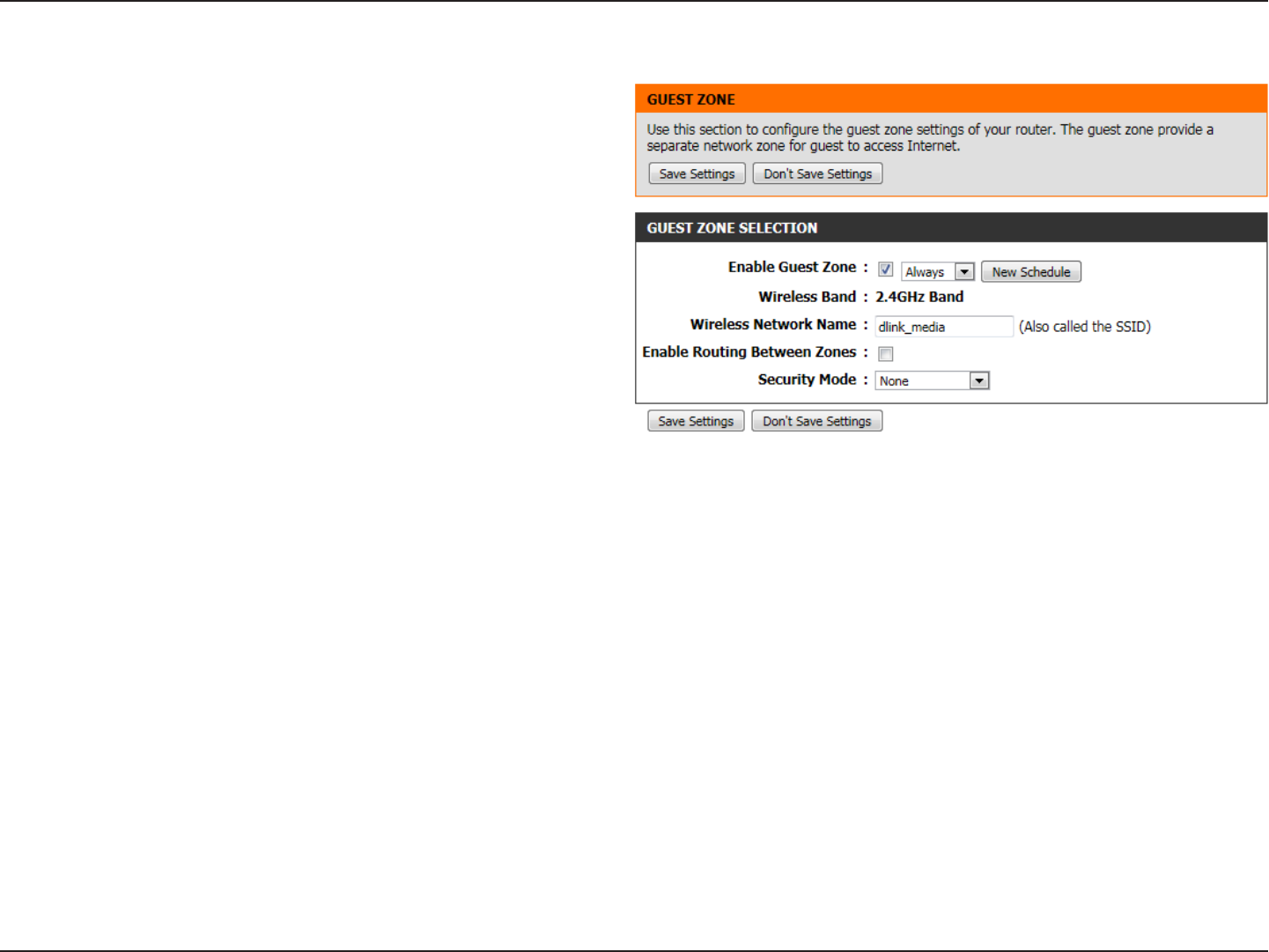 On this page, the user will be able to configure the Guest Zone, settings. The guest