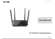 Section 1 - Product Overview Package Contents DIR-842 AC1200 Wi-Fi Gigabit Router Ethernet Cable Power Adapter :L )L &RQ¿JXUDWLRQ 1RWH WI-FI Configuration Note If any of the above items are missing, please contact your reseller. Note: Using a power supply with a different voltage rating than the one included with the DIR-842 will cause damage and void the warranty for this product.
