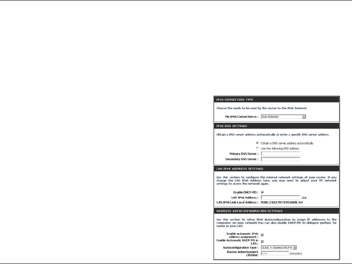 There are several connection types to choose from: Auto Detection, Static IPv6, Autoconguration (SLAAC/DHCPv6), PPPoE,