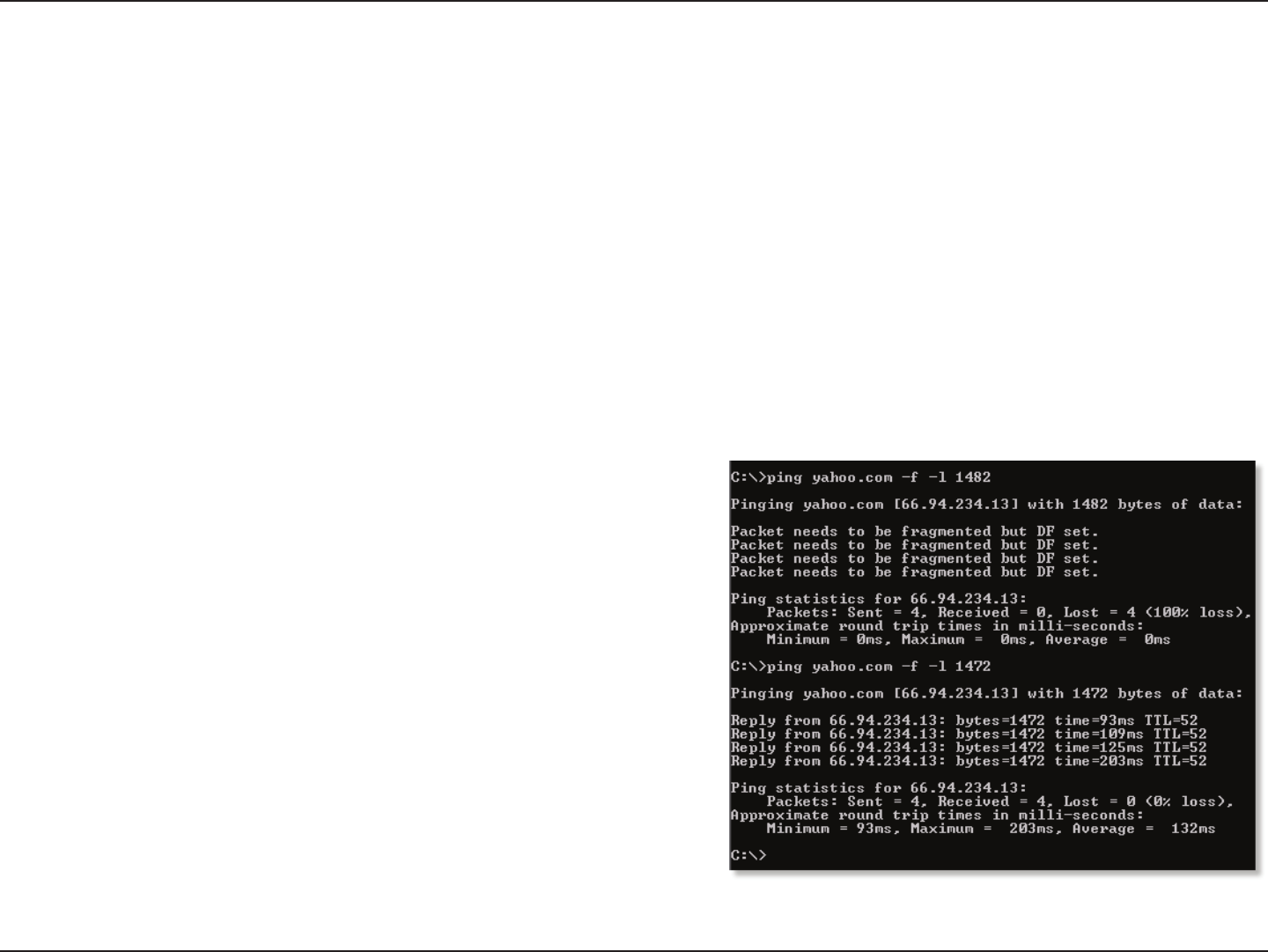 To nd the proper MTU Size, you’ll have to do a special ping of the destination you’re trying to go to. A destination could be