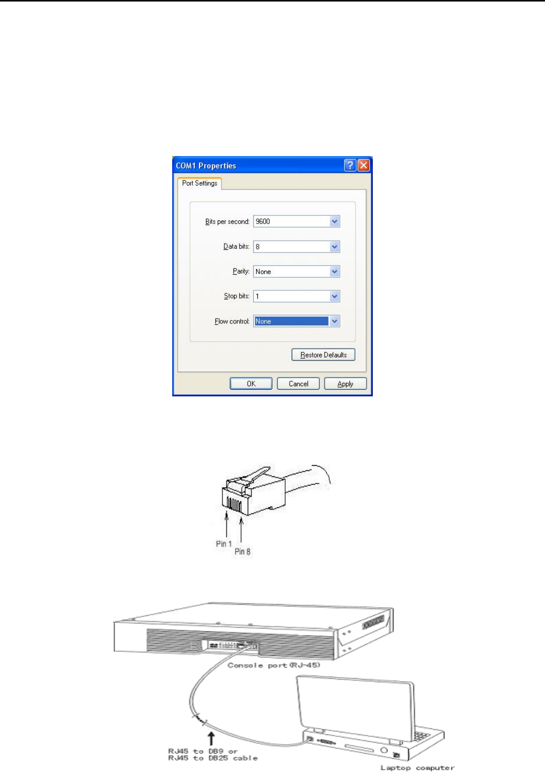 set as: Rate: 9600bps rate, eight-bit data bits, one-bit stop bit, no Parity Check bit, and no flow control as shown in Figure :